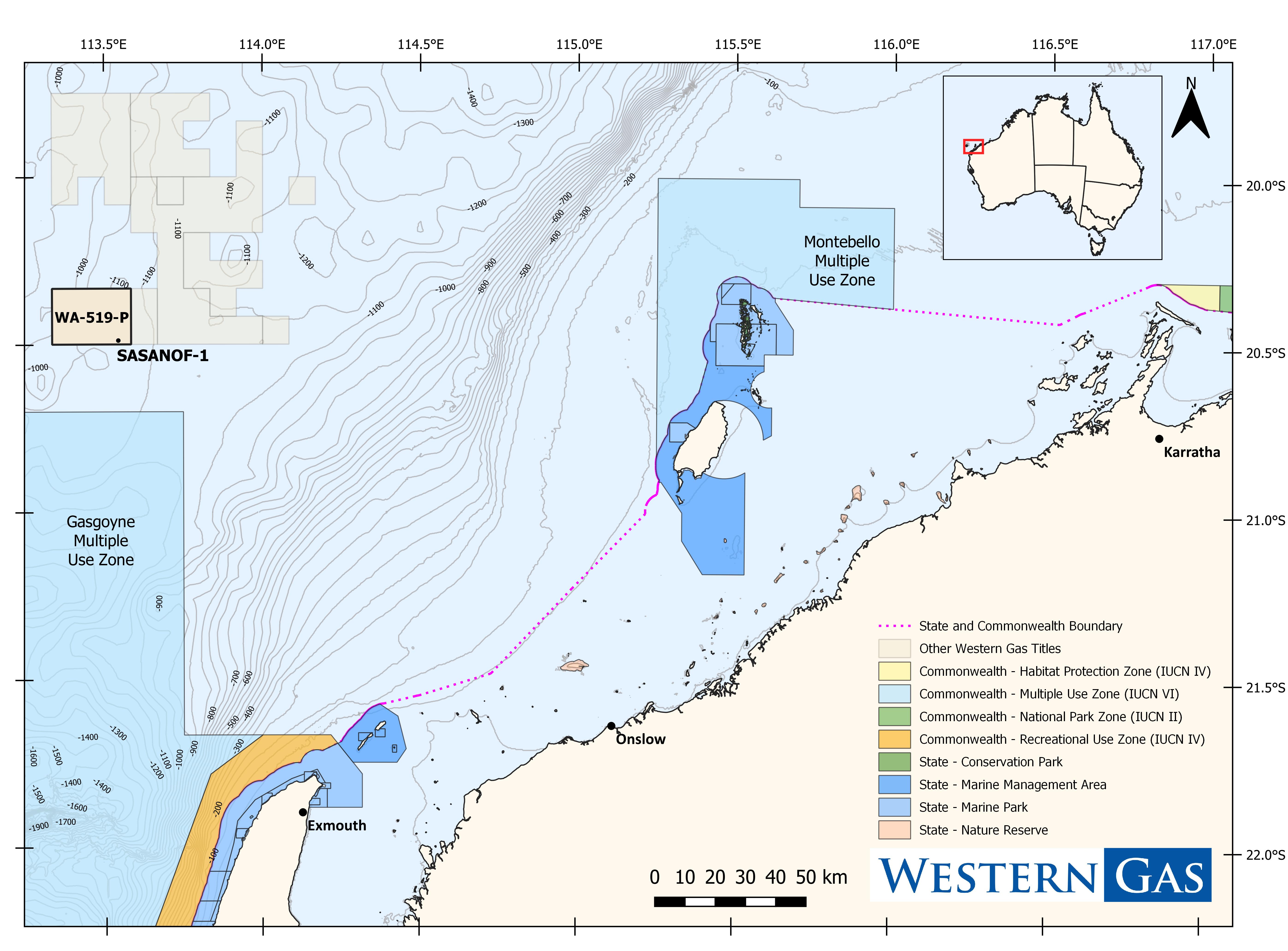 Western Gas plans to drill the Sasanof-1 exploration well in Exploration Permit WA-519-P, located in Commonwealth waters in the Carnarvon Basin offshore Western Australia.